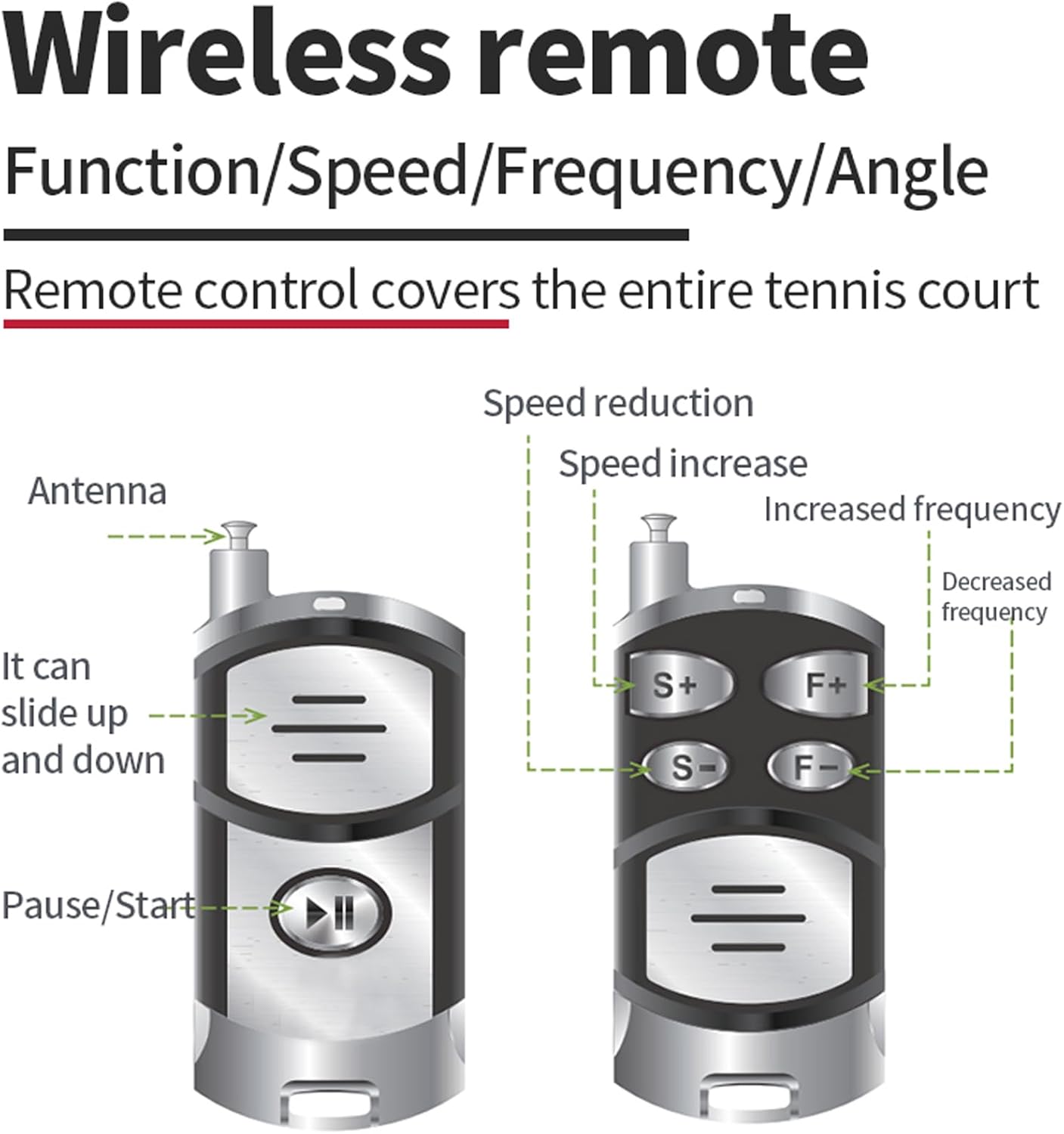 With this Tennis Serving Machine, you can practise playing tennis anytime, no need for someone to practise with you. You can use the tennis ball machine in the court, home, garage, backyard, drive way, garden or park. The thrown line is close to actual combat, and the hand feel is no different from the field hit. You can do forehand, backhand, volley, baseline, short balls, overhead, footwork and more techniques.Features:The machine is used for serving onlyThe machine is remote controlSpeed and frequency can be adjustedCan adjust the topspin and back spinThe remote control can start and stop the machineSpecification:Power: 55WColor: yellowNet weight: 9.5KgBall frequency: 2.0-8.0 seconds/ballAdapter: 24V, 5AServing distance: 1.5-4.0 metersBall capacity: 50 capsulesProduct size: 52*42*42.5cm/20.47*16.5*16.7inPackage:1x Tennis ball MachineNote:Due to the different colors of the brightness of the display and the light, the actual color may be slightly different from the picture.Due to manual measurement, please allow 0-2cm error. Thanks for your understanding.